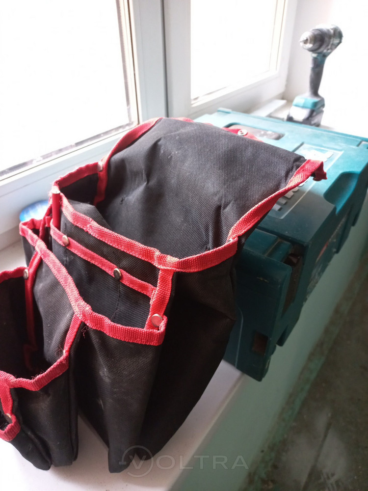 удобно разложить инструменты по своим местам. Материал прочный, по видимому водоотталкивающий. Пояс регулируется. За свою цену — идеальный органайзер.