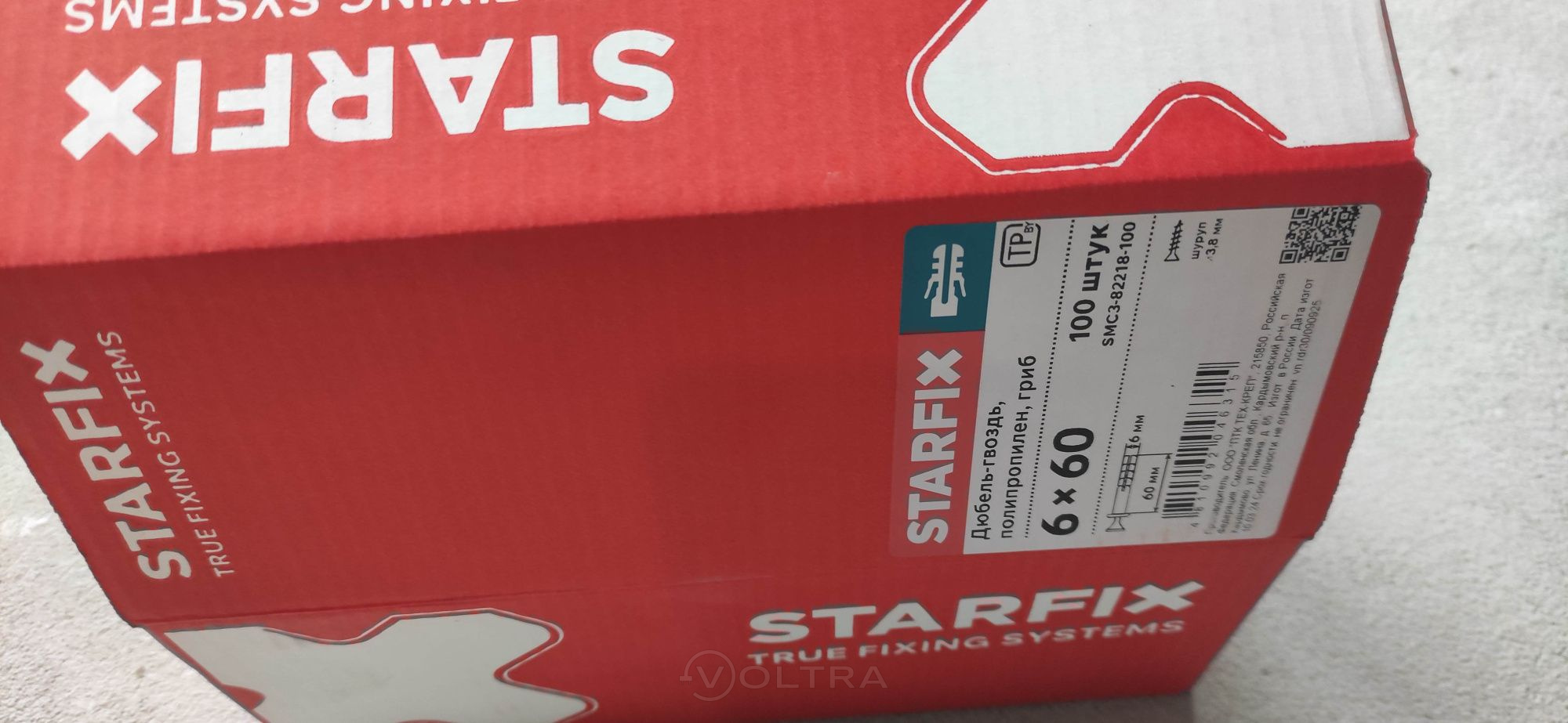 Достоинства: Хорошего качества дюбель-гвоздь с дюбелем под отверстие 6 миллиметров и длиной 60 миллиметров. Выполнен из полипропилена , шляпка в виде гриба. Поставляется в индивидуальной упаковке по 100 штук. Фирма производитель STARFIX . В использовании понравились. Конструкцию для гипсокартона с помощью их закрепил хорошо. Цена качество соответствует полностью.