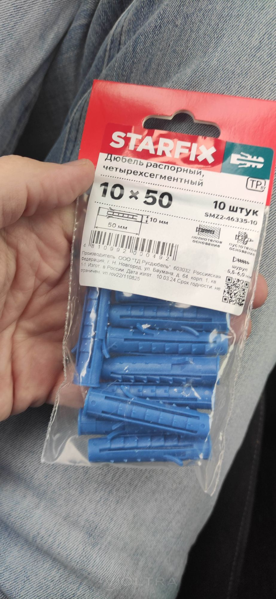 Достоинства: Хорошего качества дюбель распорный диаметром 10 миллиметров и длиной 50 миллиметров, четырехсегментный. Поставляется в индивидуальной упаковке по 10 штук. Фирма производитель Starfix. В бетонной стене держится отлично при правильно использованном сверле и подобранном шурупе. Стоят относительно дёшево. При необходимости буду покупать ещё. Советую к покупке.