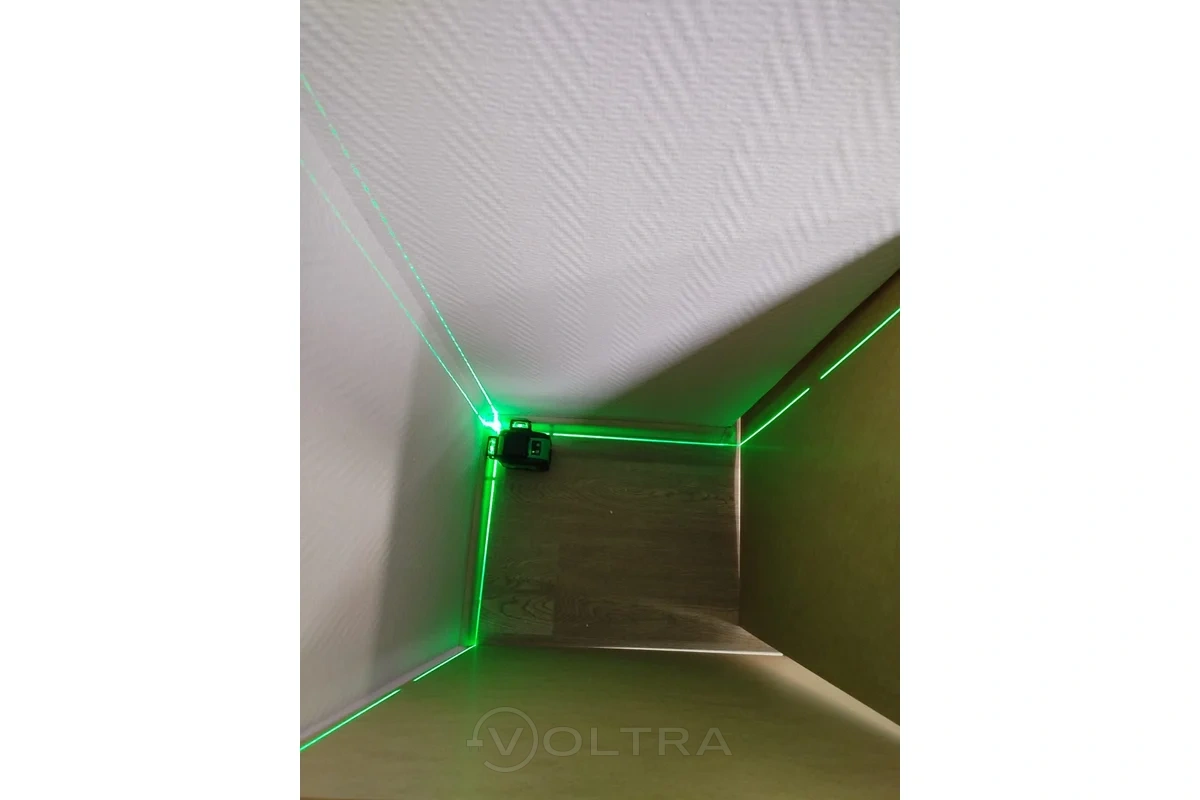 Очень нравится интенсивность луча лазера. В комплекте есть защитный чехол, что важно для переноски. Благодаря небольшому размеру прибор удобно брать с собой. Встроенный аккумулятор обеспечивает долгое время работы. Уровень проецирует вертикальные и горизонтальные линии и автоматически выравнивается. Лазерные лучи точные уже с завода, что ощутимо облегчает работу при монтаже полок, кухонь и поклейке обоев.