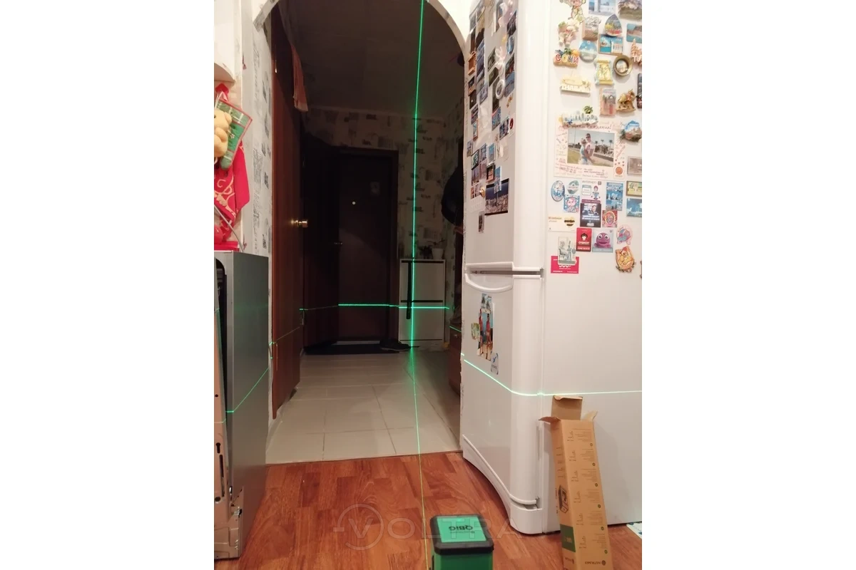 Отличный лазерный уровень приобрел для малых строительных работ, так же ремонтных работ на дому. Главное преимущество — зелёный лазер (535 нм), отлично видно даже при ярком свете. Очень удобно при разметке плитки, поклейки обоев или выравнивание мебели т.к. есть две линии горизонтальная и вертикальная , которые пересекаются под прямым углом.
