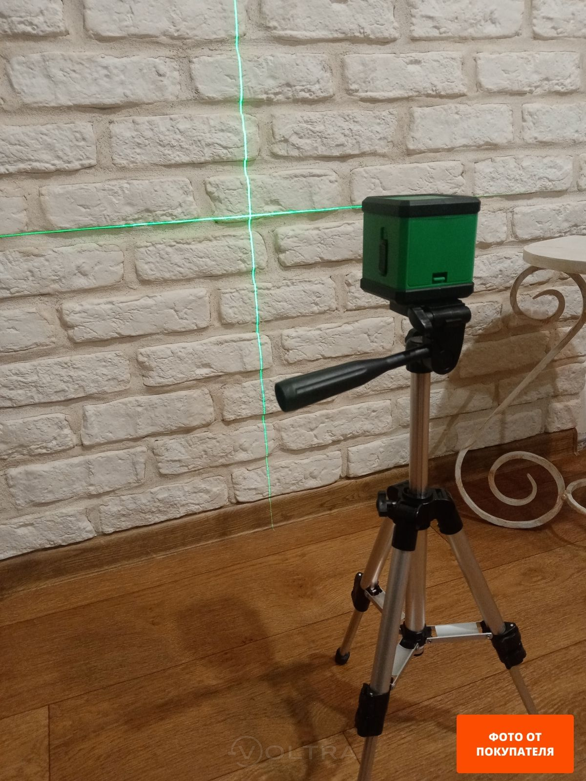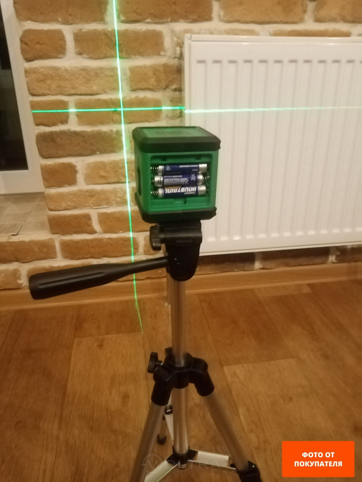 Отличный прибор для бытового использования. Зеленый лазер значительно лучше виден на фоне интерьера, чем красный. Установленный в комплекте алюминиевый штатив позволяет быстро выставить нужную высоту. При работе радует простота управления и точность построения линий с пересечением под прямым углом.