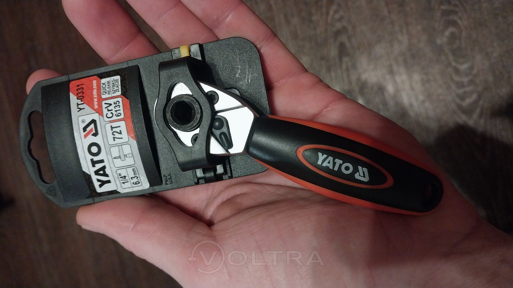 порадовал ключик, размер компактный, сам выглядит мощно. Трещотка работает чётко, реверс переключается без заеданий.