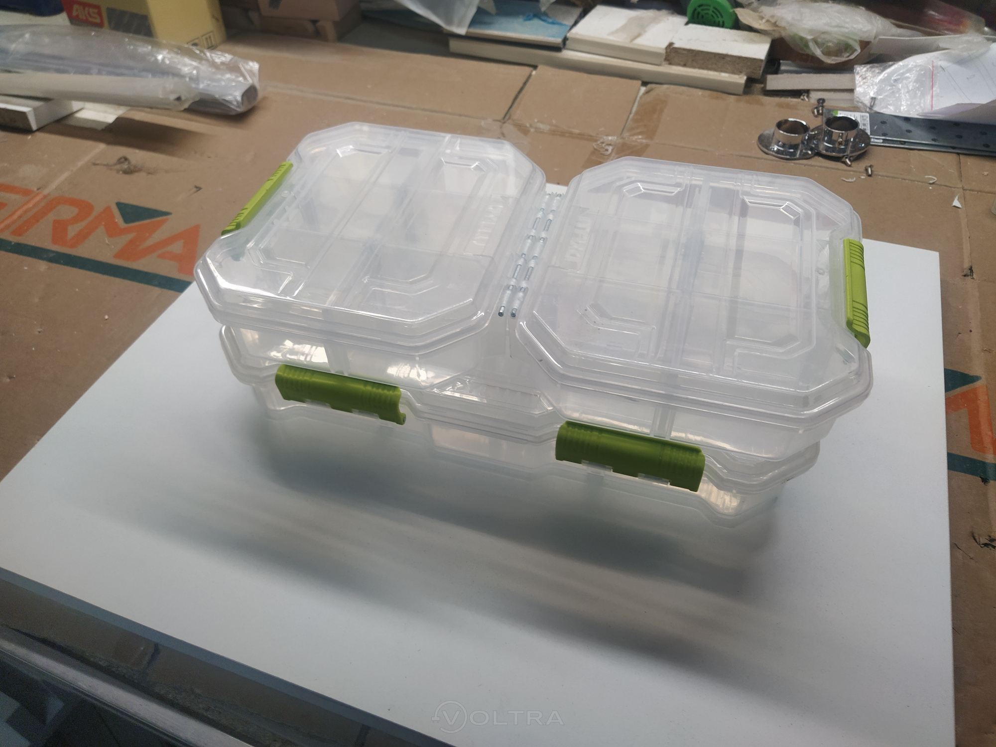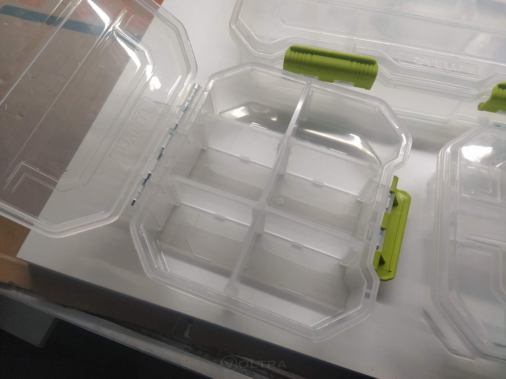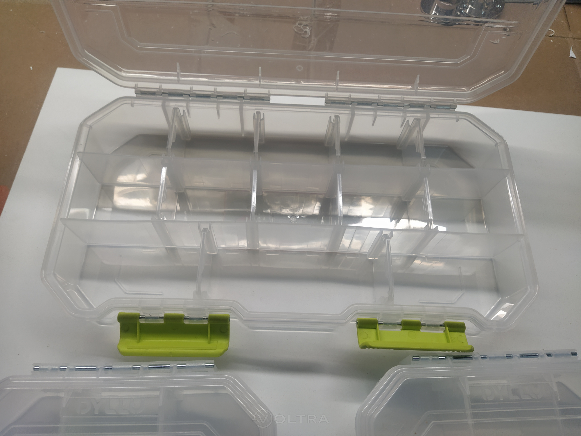 По изображению на сайте подумал, что они соединены в одно целое. Но между собой они не фиксируются. Органайзеры из качественного, мягкого и приятного на ощупь пластика. Оси из металла, защёлки из плотного пластика, выглядят надёжно. В малых органайзерах все перегородки можно убирать и переставлять, в большом только поперечные.