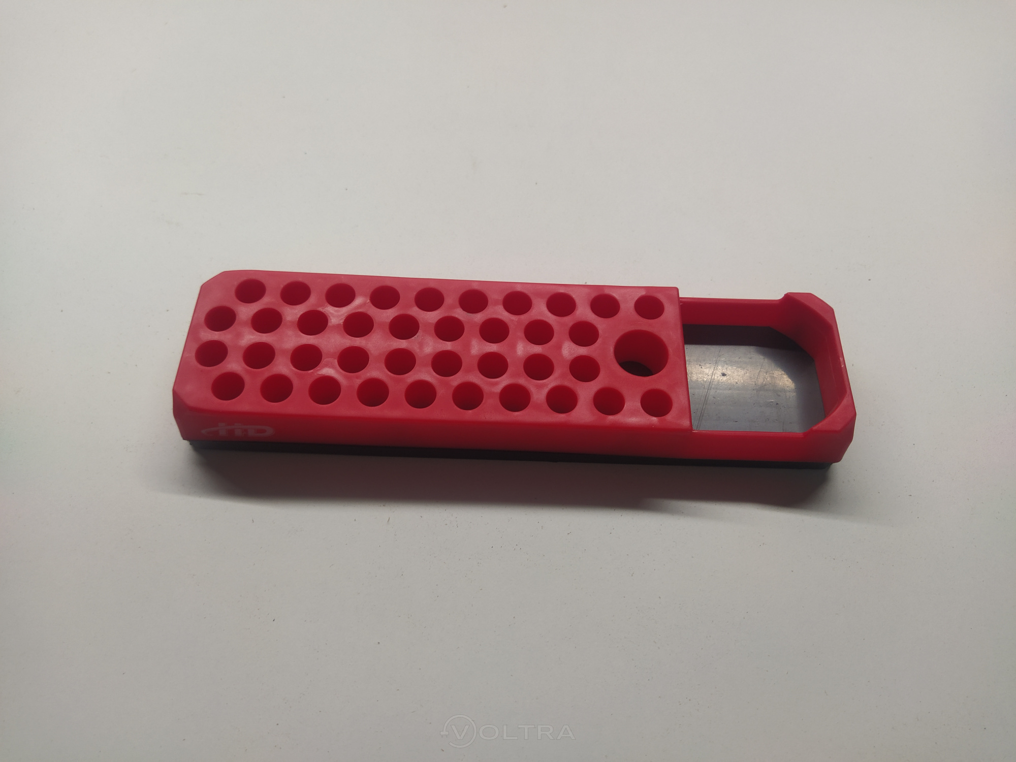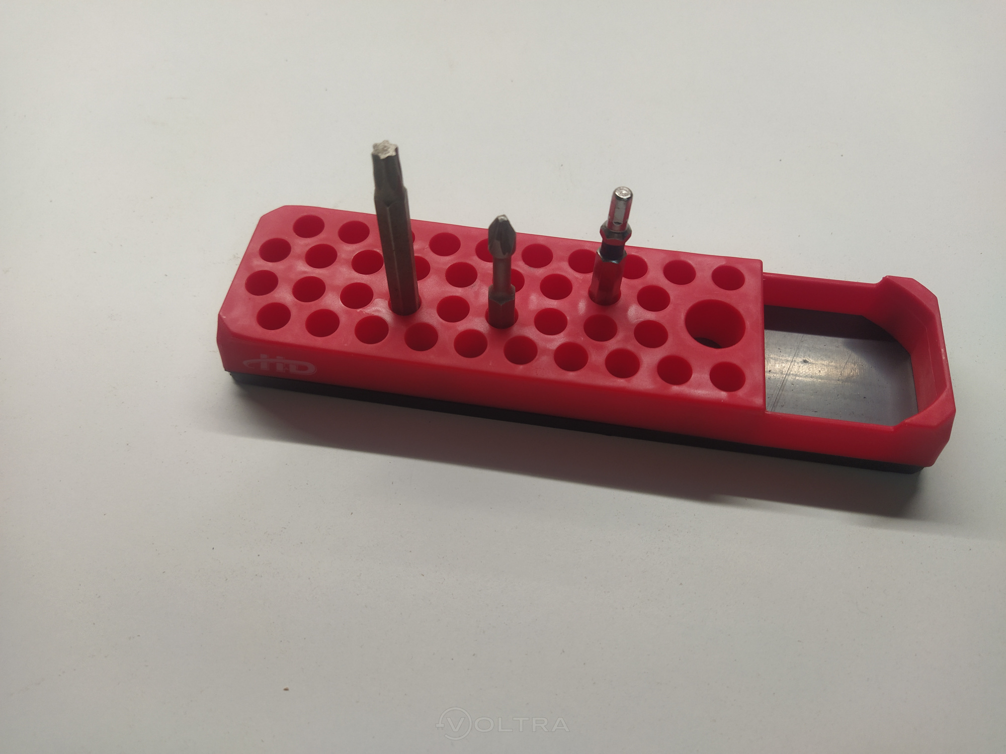 В гараже использую много разных бит и переходников, которые хранятся вразнобой. Для того, чтобы всё было в одном месте купил такой органайзер. Магнит достаточно сильный, при переворачивании биты не выпадают. Есть отдельное место для хранения винтов, шурупов на магните, чтобы не рассыпались. Органайзер понравился, рекомендую к покупке.