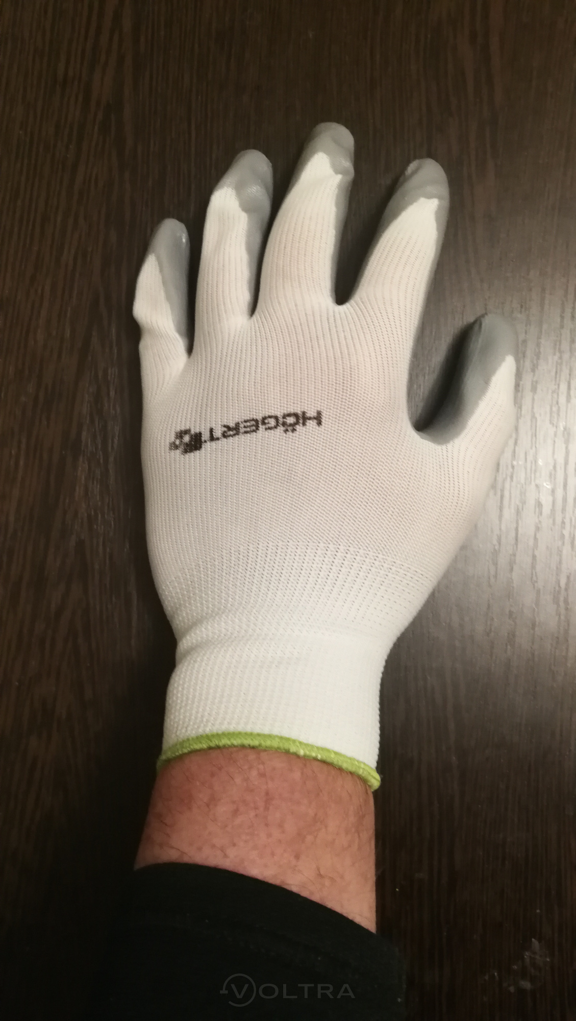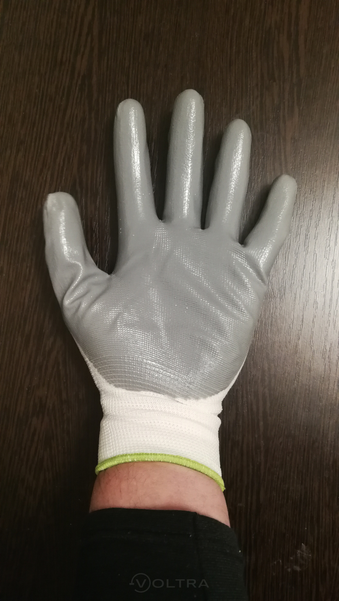 Достоинства: Нитриловое покрытие устойчивое к маслам и растворителям. Большой размер подходит на большую руку, не все модели имеют такие размеры. Перчатки достаточно эластичные и не сковывают движений. Рука в перчатке не потеет при высокой температуре.