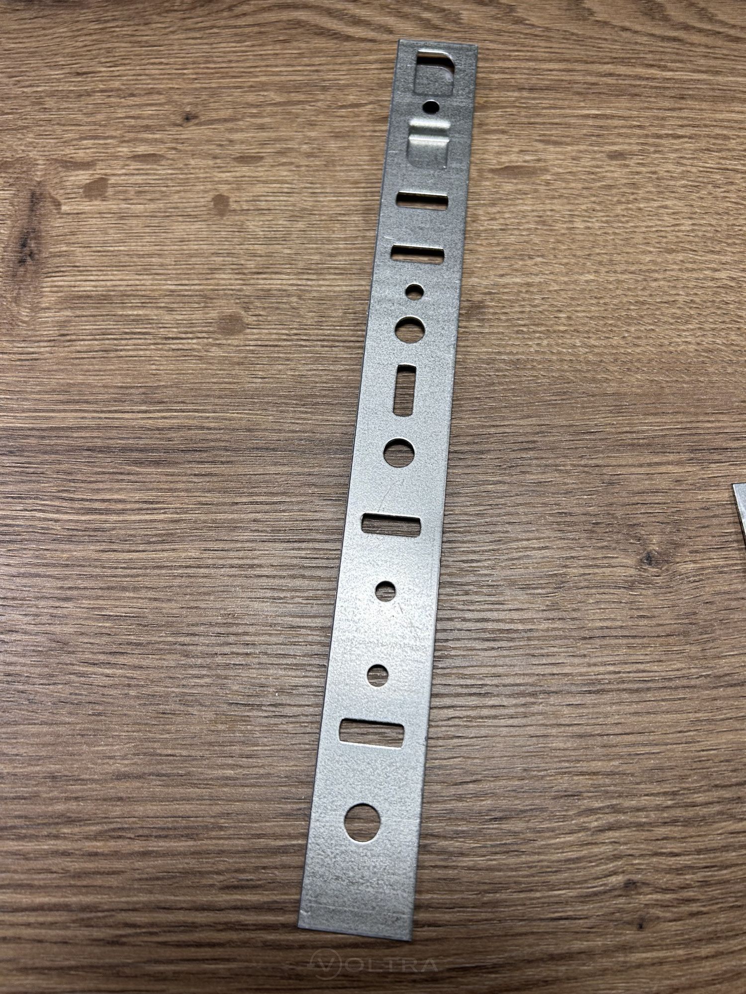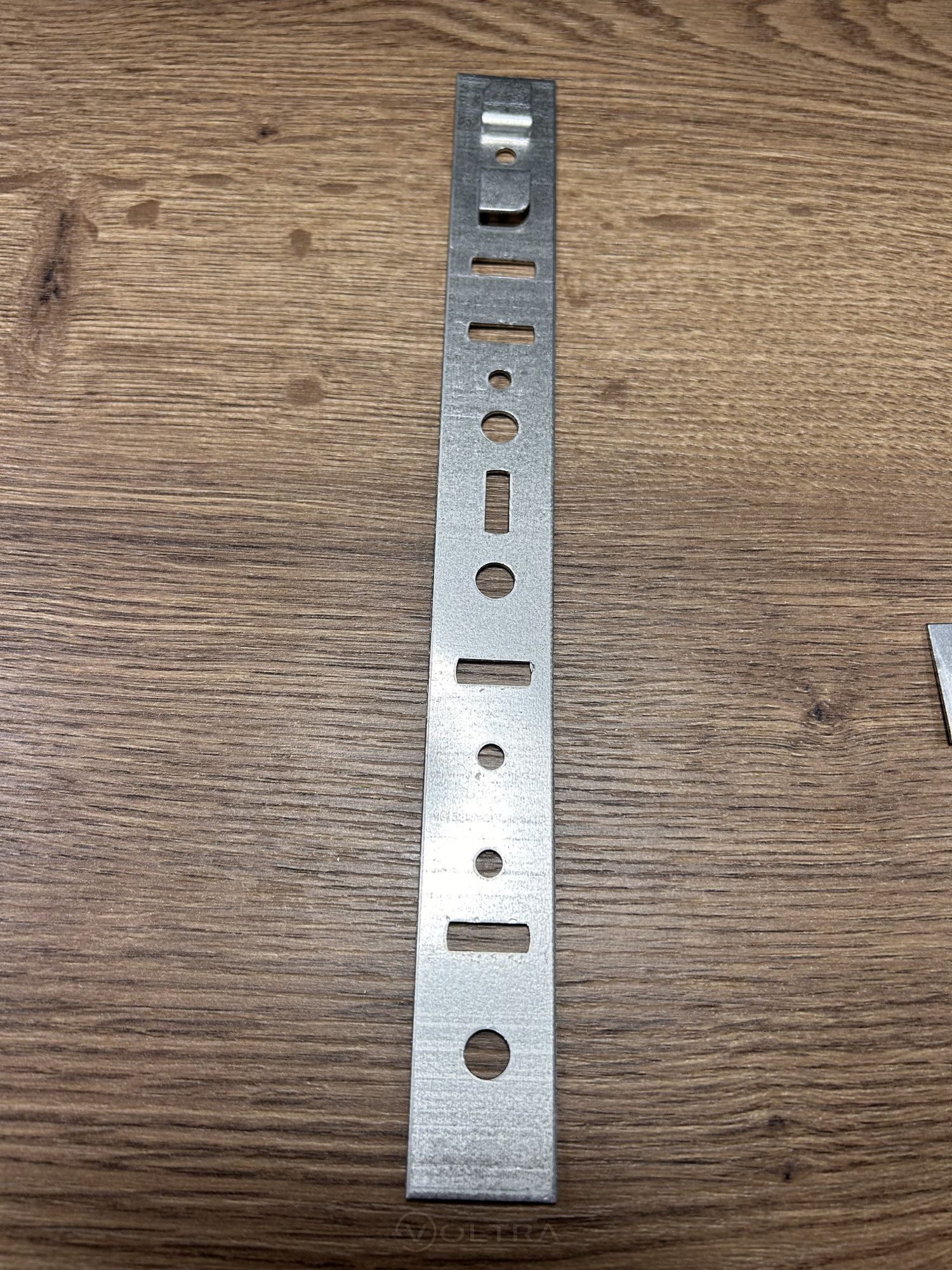 Понадобился металлический удлинитель для крепления стяжек к строительному инструменту, искал что-то похоже на магнитную пластину. Выбор пал на эту пластину для оконной фурнитуры. Пластина данная изготовленная из толстой гибкой стали, имеет монтажные отверстия круглого и прямоугольного сечения. Для нужных мне целей подошла идеально.