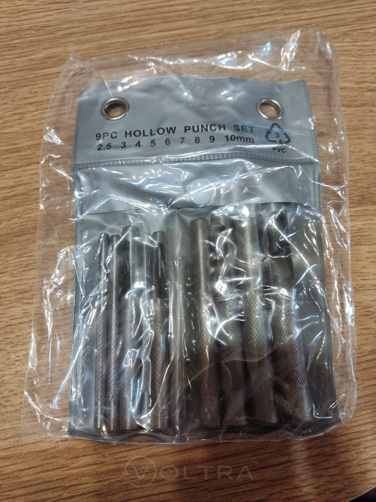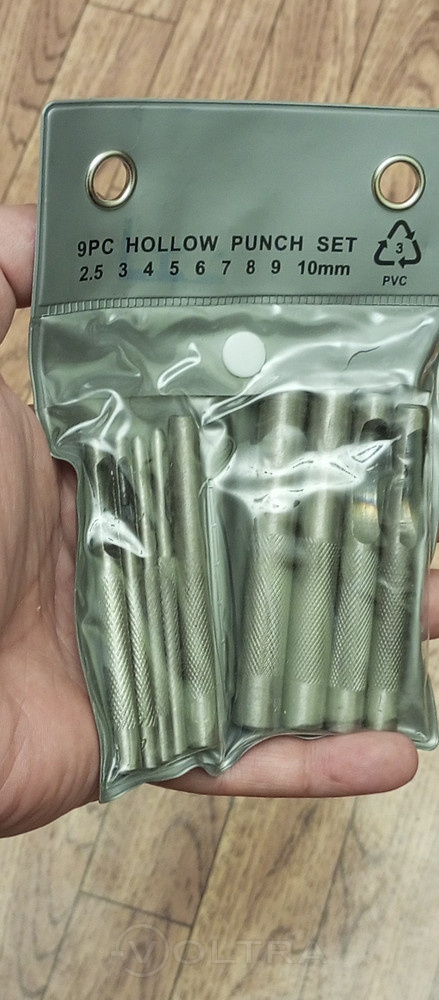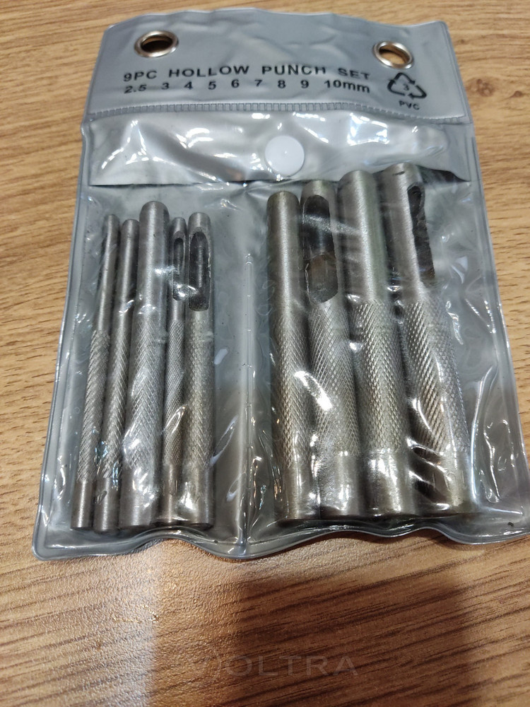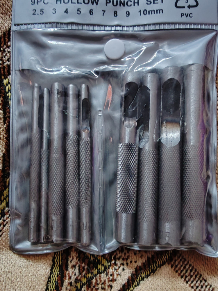 Отличный набор пробойников. 9 штук, актуальные размеры для работы с кожей. Металл неплохой, режут ровно. За свою цену отличный инструмент. Рекомендую.