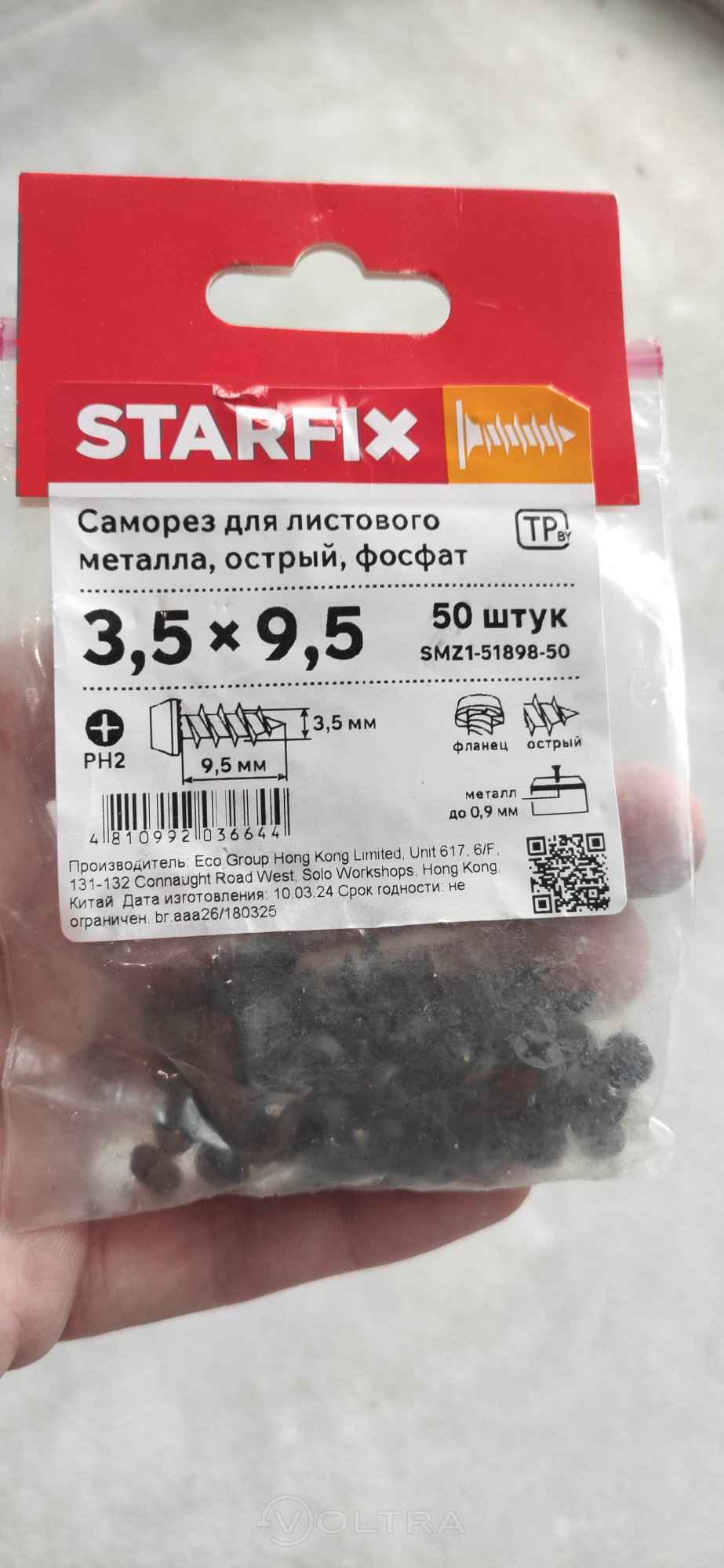 Достоинства: Хорошего качества маморез диаметром у основания 3.5 миллиметра и общей длиной 9.5 миллиметров. Предназначен для соединения листового металла. Очень острые, хотя сверла на хвостовике нет. Поставляется в индивидуальной упаковке по 50 штук. Фирма производитель STARFIX. Цена качество соответствует полностью.