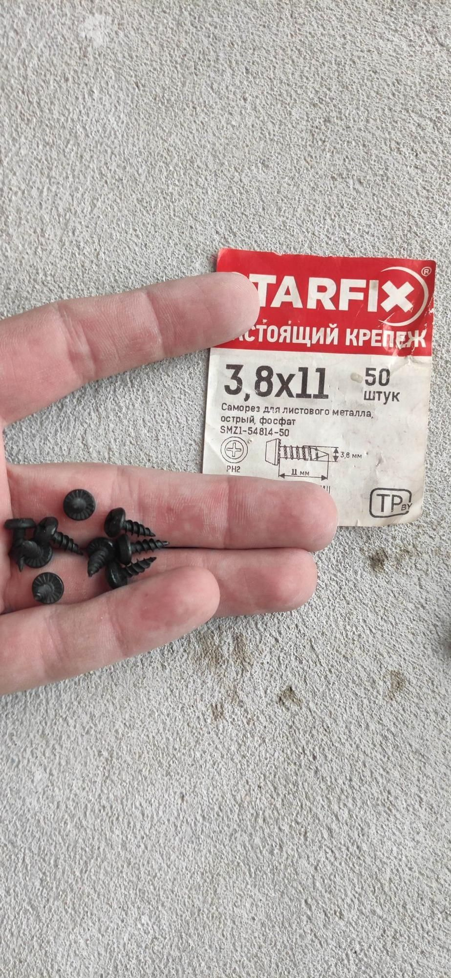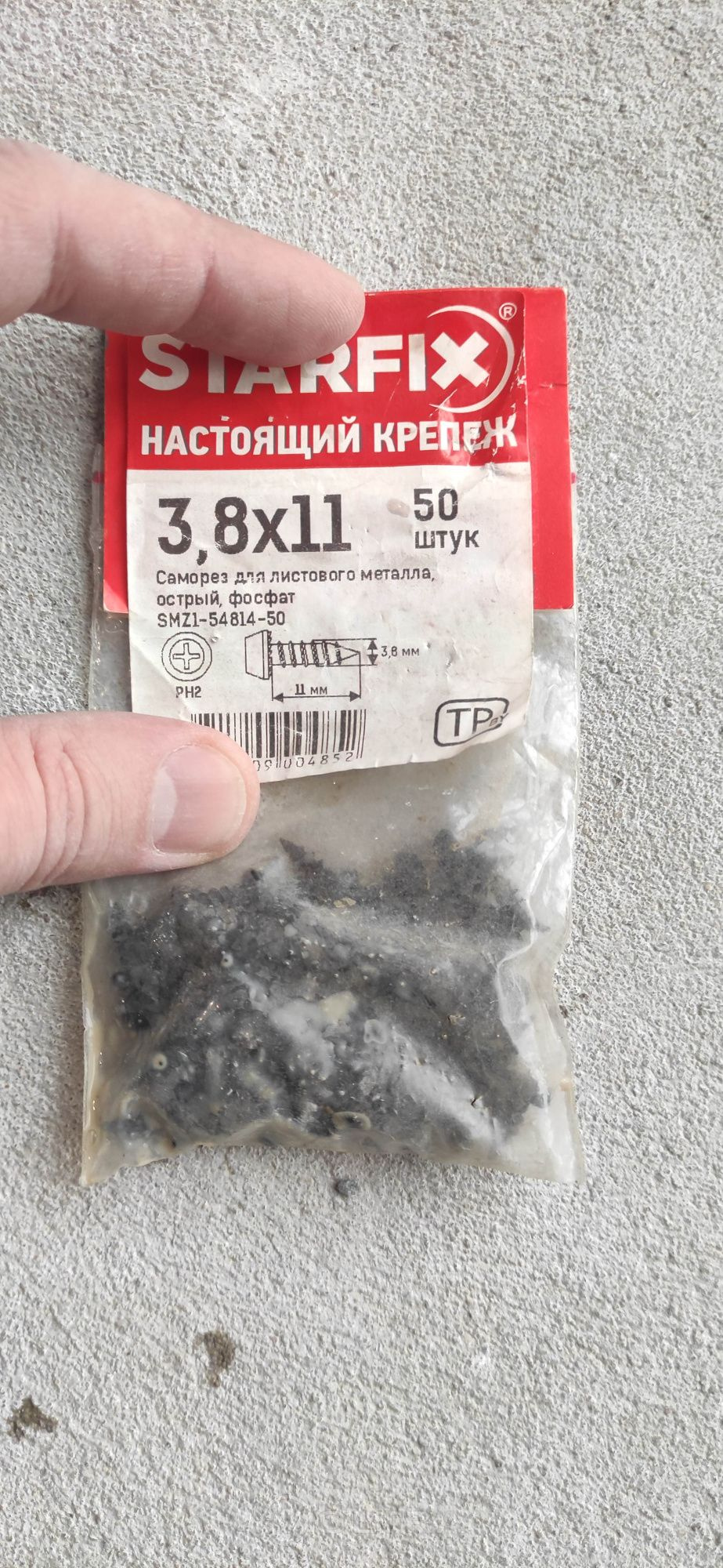 Достоинства: Хорошего качества саморез размером 3.8х11миллиметра для листового металла, саморезы очень острые . Металлический профиль в два слоя по 0.6 миллиметра прошивают хорошо, держат отлично . Поставляются в упаковке по 50 штук. Фирма производитель Starfix . Цена качество соответствует полностью. При необходимости буду покупать ещё.