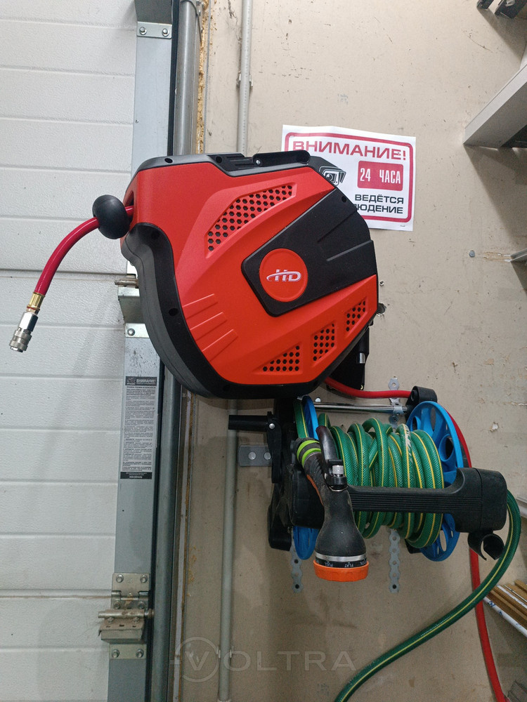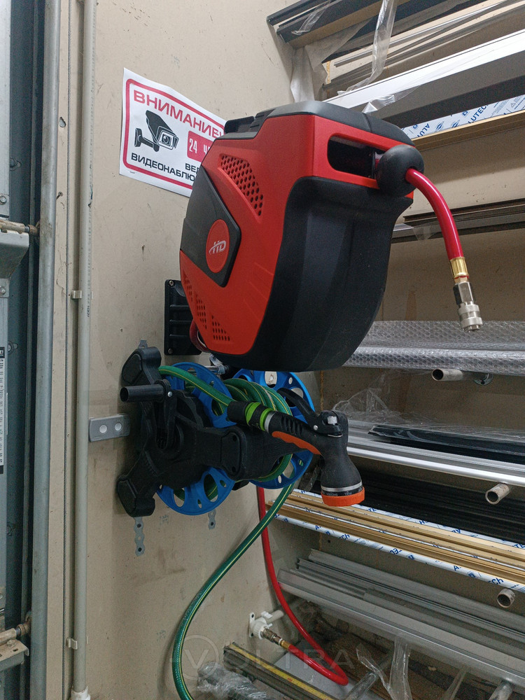Достоинства: автоматически сматывает шланг