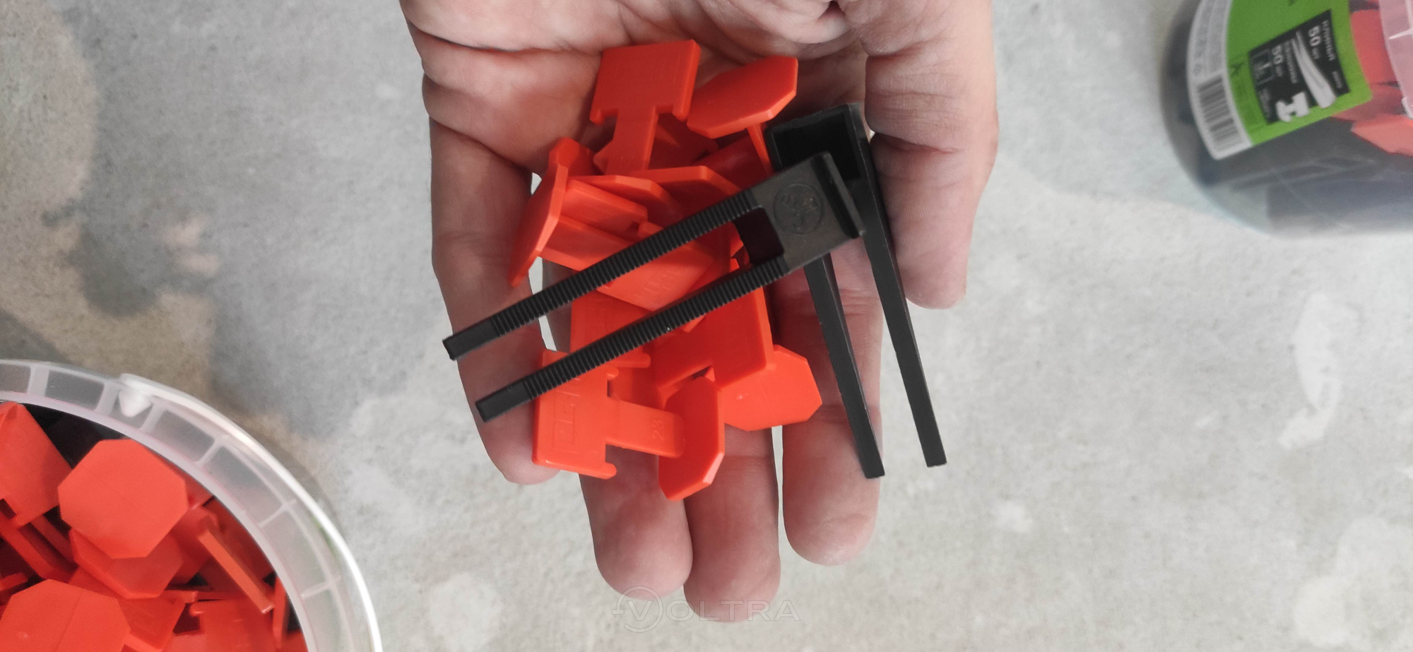 Достоинства: Ставлю четверку только из-за того что без специальных зажимных щипцов руками не очень удобно затягивать. А в общем качество очень понравилось.без данной системы плитку ровно очень сложно уложить. поставляется в индивидуальной упаковке по 50 клинов и по 50 зажимов. Фирма производитель Сибртех . После высыхания клея отламываются у основания без проблем, а при затяжке клином ни обэдной системы не сломал. Цена качество соответствует полностью.