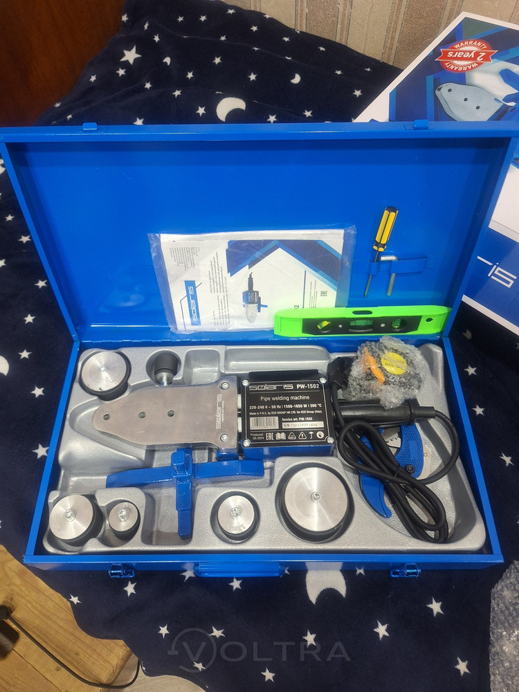 отличная штука для сварки пластиковых труб! Быстро нагревается, температуру можно регулировать. Тефлоновые насадки в комплекте, пластик не прилипает. Работать удобно, всё компактно и под рукой.