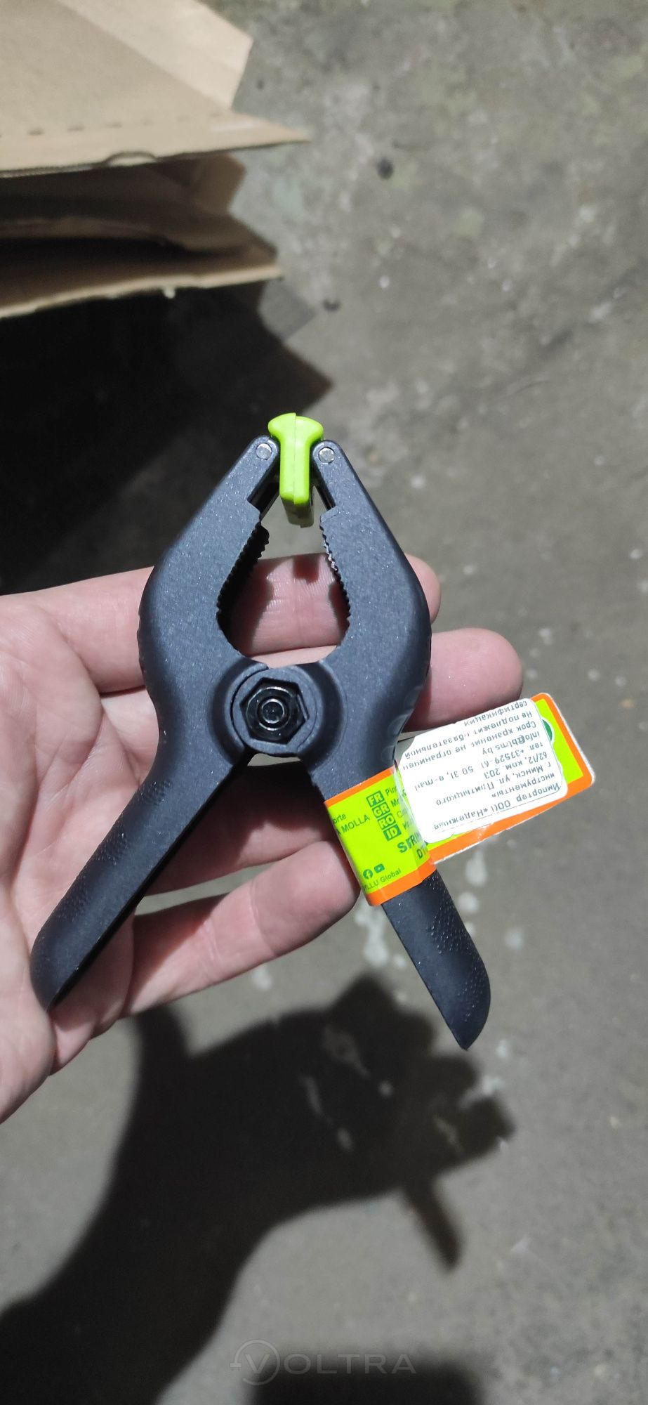 Достоинства: Обычная бюджетная струбцина быстрозажимная общей длиной 100мм. Фирма производитель DYLLU. Пружина хорошая, держит хорошо. Выполнена из жёсткого пластика, вроде не хрупкий. Губки выполнены из резины средней жёсткости, посажены на шарнирах, что очень удобно в использовании. Стоила на акции очень дёшево как и все на сайте вольтра бай. Советую к покупке.