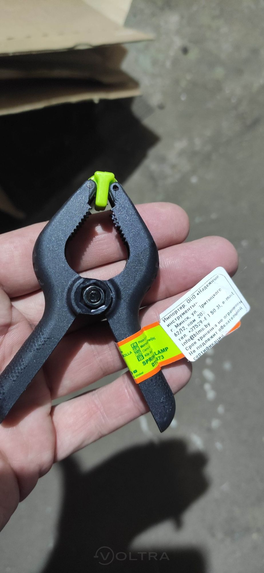 Достоинства: Хорошая бюджетная струбцина быстрозажимная длиной 75 миллиметров. Фирма производитель DYLLU. Выполнена хорошо, брака нет. Пластик жёсткий, пружина средней жёсткости но держит небольшие детали хорошо. Губки из мягкой резины зелёного цвета, губки подвижные (что немаловажно). Стоят на акции копейки как и все на сайте вольтра бай.