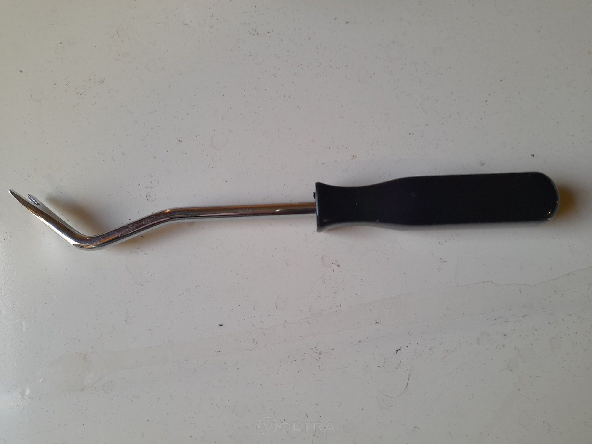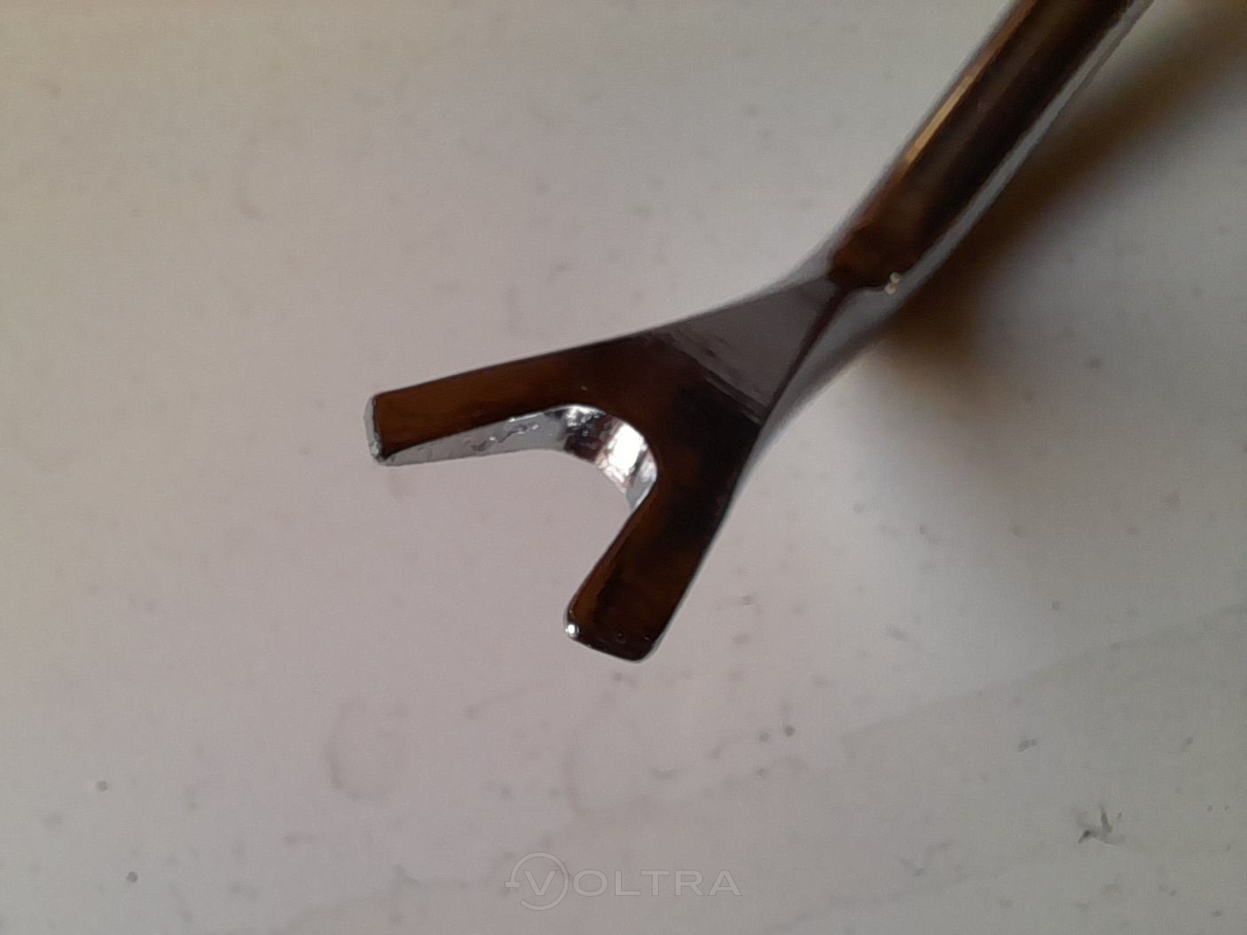 Пришлось пока использовать несколько раз, для снятия пластмассовых пистонов.. Так что особенно нечего про него сказать. Рукоятка выполнена из пластика, который очень гладкий, даже блестит, такое ощущение как-будто полирован. Может скользить в руках, поэтому считаю производитель мог сделать рукоятку и другой. Пришлось немного доработать съёмник. Сама рабочая часть (зев) на кромках имеет небольшие заусенцы, пришлось их зачистить. Концы лап тоже немного сошлифовал, что-бы были потоньше, легче будет подсовывать под крепёж.