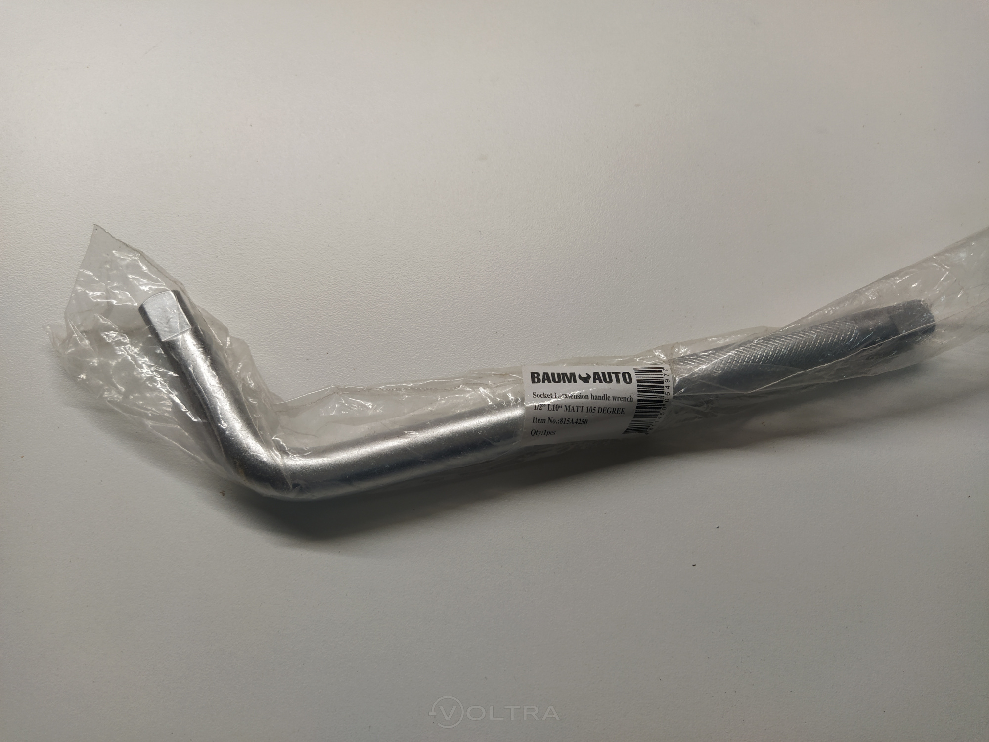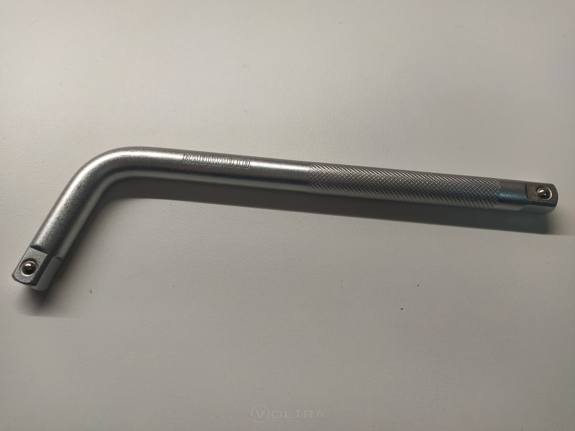 Стандартный для ключей материал - хром-ванадиевая сталь. Аккуратное исполнение, отсутствуют заусенцы и дефекты покрытия. Отличительная особенность данного воротка - угол 105 градусов, позволяющий использовать его в ограниченном пространстве. Накатка на поверхности позволит инструменту не скользить в руке, рабочие части в виде квадрата под 1/2 дюйма расположены с двух сторон, имеются шарики для фиксации головок.