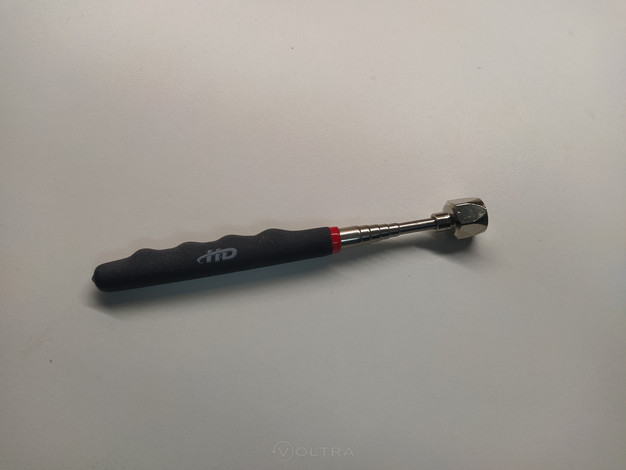 Теперь не боюсь уронить гайку или болт при ремонте автомобиля. Раскладывается почти до 80 см. В сложенном виде - достаточно компактное изделие. Магнит реально сильный, держит достаточно тяжёлую рулетку. Ручка сделана из мягкого, нескользкого материала, приятного на ощупь. В общем, вещь достойная, рекомендую.