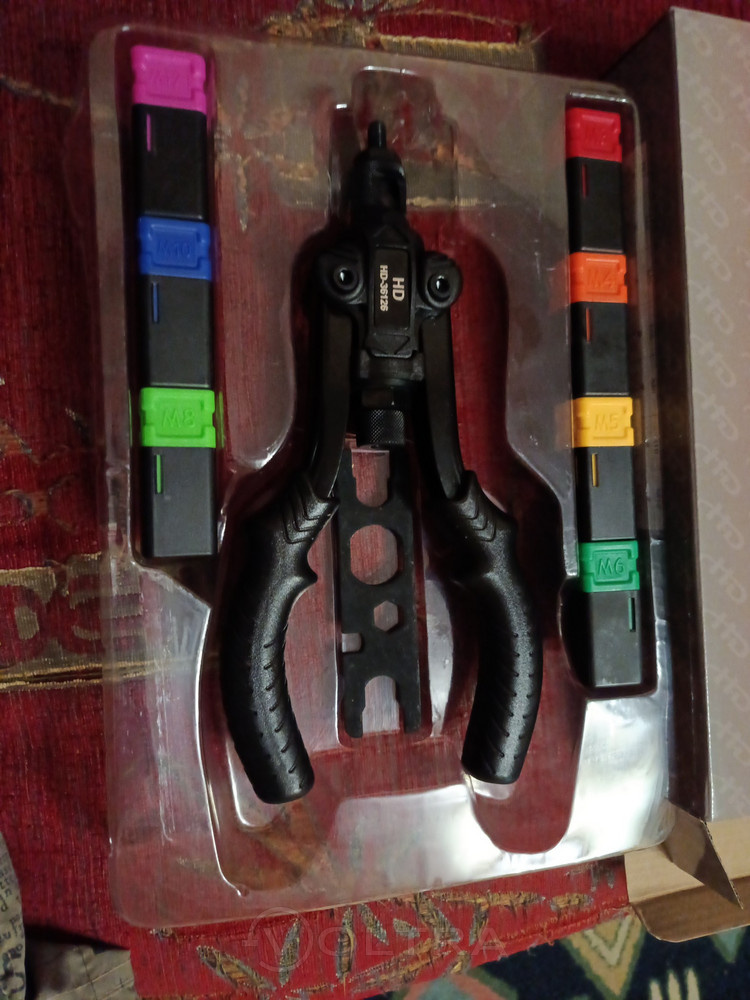Полный комплект — инструмент порадовал! Я не профи, но кое‑что по металлу делаю сам, и этот заклепочник реально упрощает жизнь. Особенно круто, что диапазон широкий и мелкие М3 тянет и серьёзные М12.